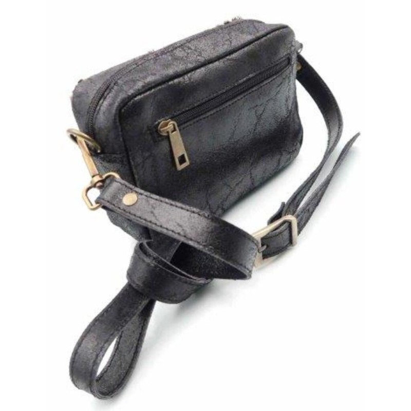 Sac porté travers, issu de la marque CARAMELO composé de Cuir Zèbre avec sa bandoulière réglable Noir.