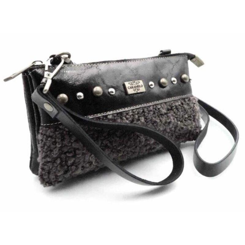 Sac porté travers, issu de la marque CARAMELO composé de Cuir et de Tweed Vert. Ce sac est livré avec une bandoulière Noir.