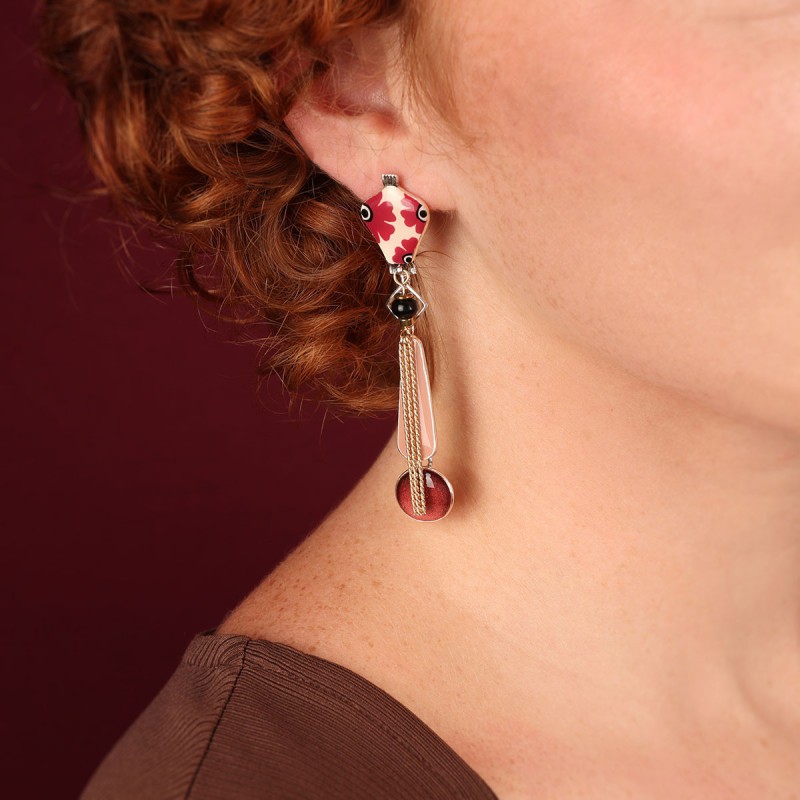Boucles d'oreilles fantaisies TARATATA livrées dans la pochette de la marque.