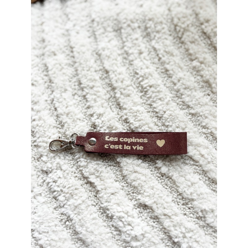 Porte-Clés en cuir Pailleté Grenat doré issu de la marque LA CARTABLIERE sur lequel est imprimé Les Copines c’est la vie.