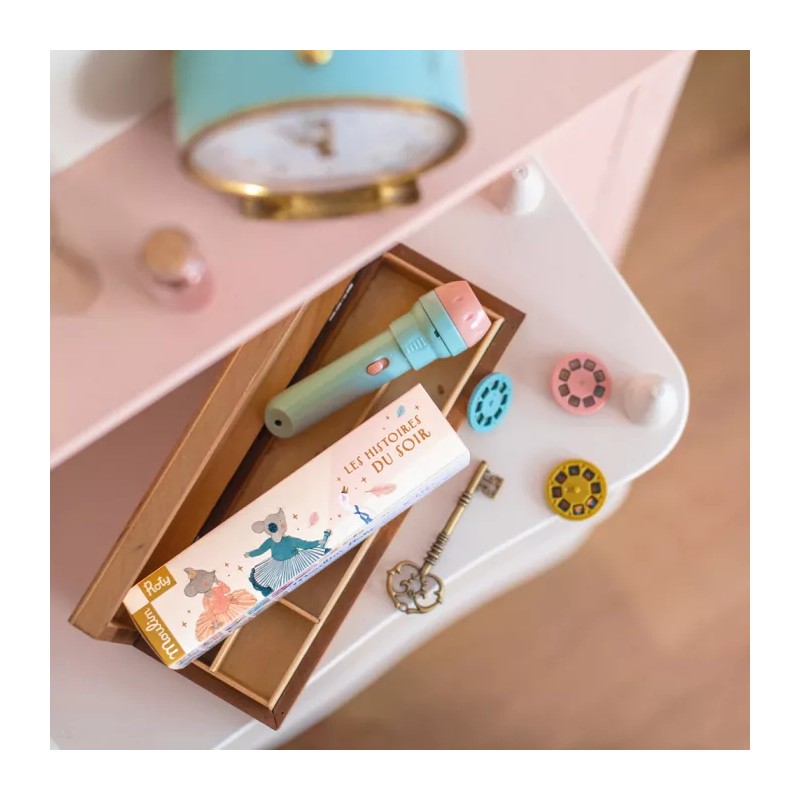 Bienvenue dans l’univers de la petite école de danse ! Comprend une lampe à projeter et 3 disques pour imaginer de belles histoires avant de s’endormir le soir. On éteint la lumière pour que la magie opère et c’est parti…