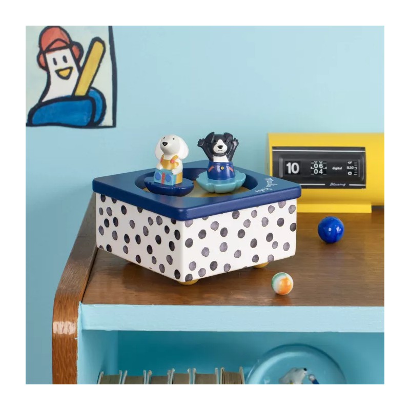 Puce et pilou tournent et dansent au rythme de la mélodie d’un weekend à Rome d’Etienne Daho pour bercer et endormir votre bébé.