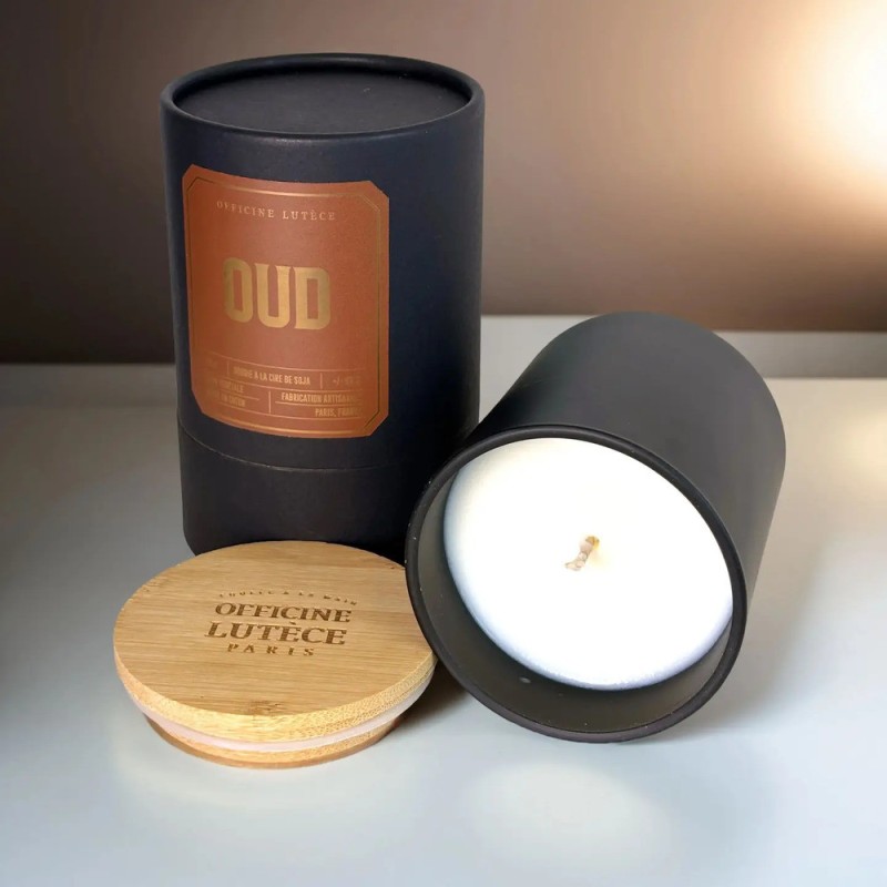 Bougie parfumée Oud signée OFFICINE LUTECE.