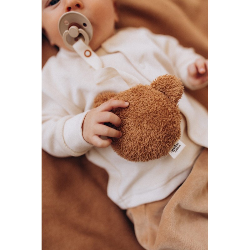 Dites adieu aux tétines perdues et bonjour à la douceur avec l’attache-tétine ourson ! Cet adorable ourson en peluche est bien plus qu’un simple compagnon câlin : il garde la tétine de votre bébé à portée de main, propre et toujours accessible. Conçu pour les petites mains et les gros câlins, cet ourson apporte calme et praticité où que vous soyez. Que ce soit pour la sieste, les trajets en voiture ou les câlins, il deviendra le nouveau compagnon préféré de votre tout-petit. Taille : 9 cm.
