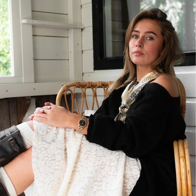 Montre femme Ronde signée OOZOO. Ce modèle rond classique est incontournable. Cette montre est dotée d'un bracelet à maillons dorés brillants et d'un boîtier en métal doré de 28 mm de diamètre. Son cadran noir, ses chiffres dorés et ses aiguilles assorties vous assurent une allure résolument tendance.