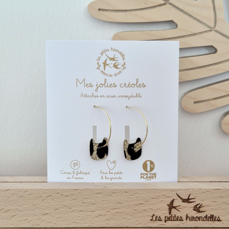 Ajoutez une touche de nature et de poésie à votre style avec ces magnifiques créoles pailletées en forme de chat. Des créoles créées en feutrine pailletée sont aussi légères qu’une plume et très faciles à insérer. Les motifs léopard sont aléatoires sur chaque modèle, chaque pièce est donc unique. 🙂 Grâce à leurs attaches en acier inoxydable doré, ces boucles d’oreilles chats sont hypoallergéniques.