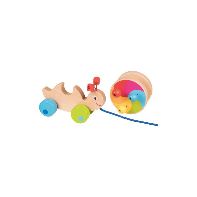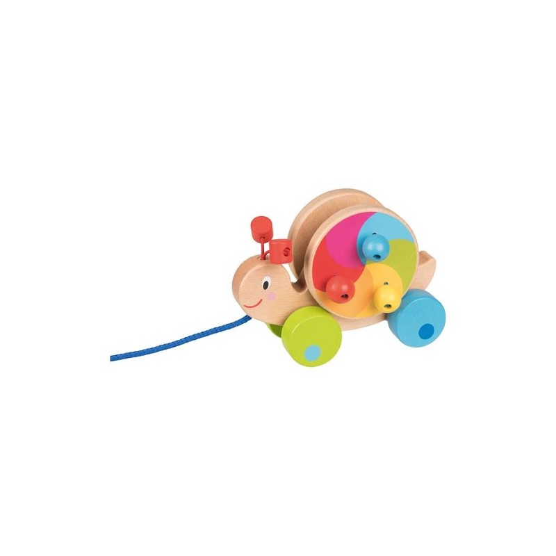 « Un escargot à tirer conçu pour être simplement irrésistible. Fabriqué en bois de hêtre massif avec une finition de grande qualité. Son design aux couleurs joyeuses met en avant le mouvement de la carapace qui tourne lorsqu’il avance. Les perles en bois produisent un son agréable et discret. Il deviendra vite le compagnon idéal des premières excursions des enfants. »