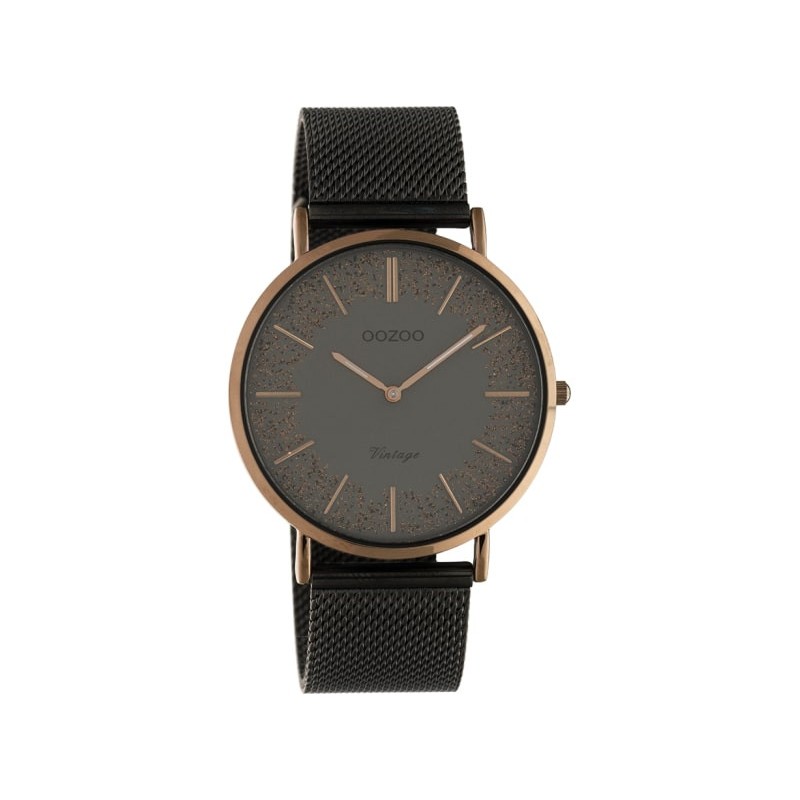 Montre femme signée OOZOO composée d'un bracelet en maille milanaise noire.