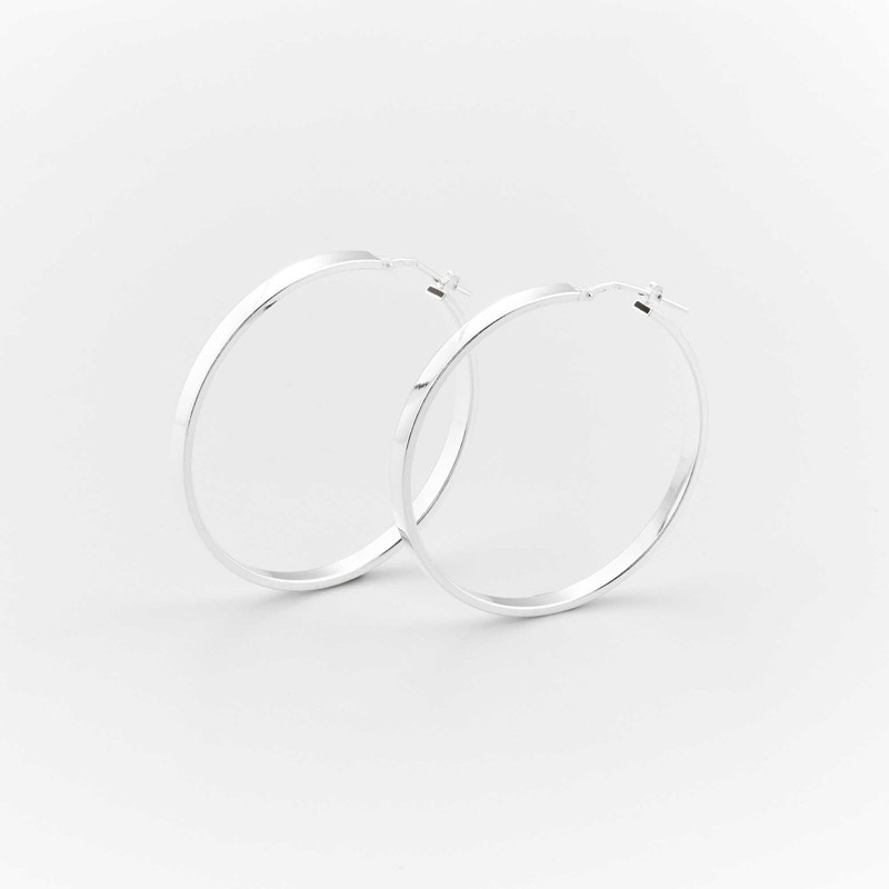 Boucles d'oreilles Créoles à section plate en Argent.