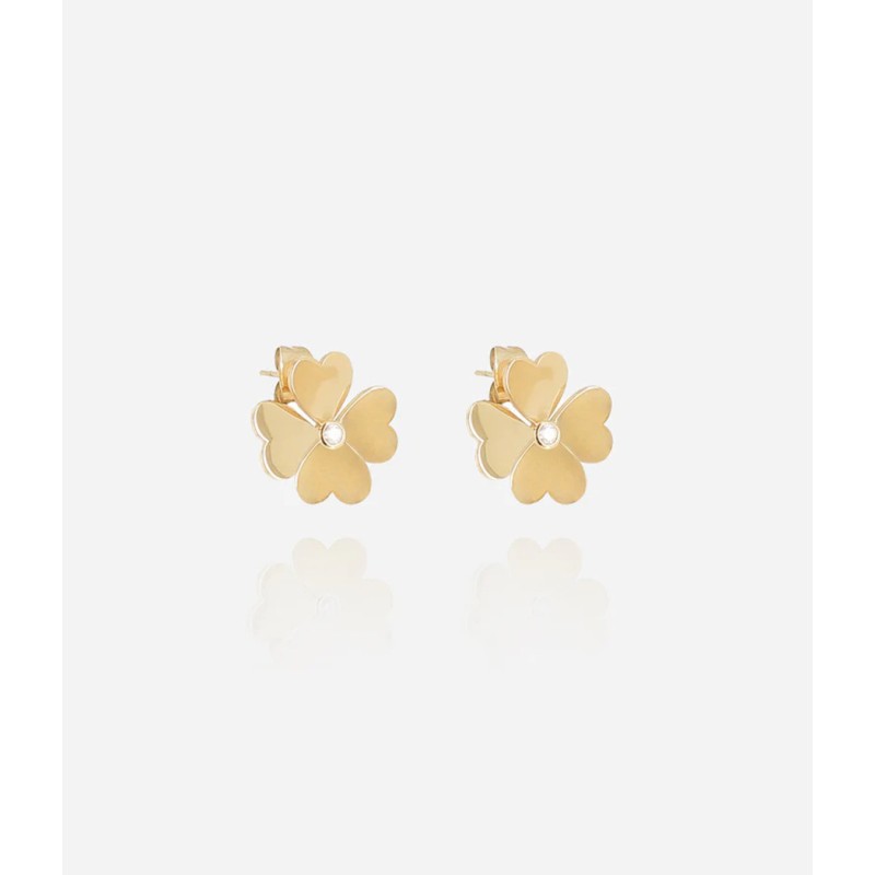 Boucles d'oreilles Puces Giorgio signées ZAG Bijoux serties d'un trèfle en acier au milieu duquel se trouve un zirconium.