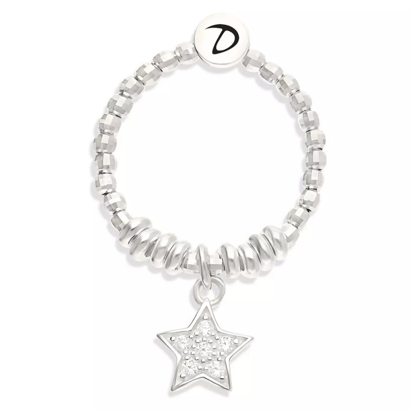 Bague Elastique Etoile en Argent signée DORIANE. Brillez au quotidien avec la Bague Élastique Argent 925 Rondelles Étoile Oxyde, une création délicate et audacieuse signée Atelier Doriane Bijoux. Réalisée en Argent 925, elle se distingue par son étoile sertie d’un oxyde de zirconium lumineux, suspendue au milieu d’un jeu subtil de perles argentées.