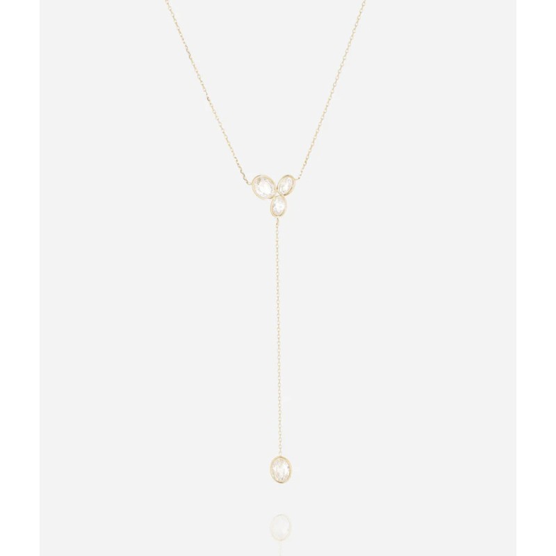 Collier Galane signé ZAG Bijoux orné de 3 zirconiums ovales auxquels est reliée une chainette, elle-même sertie d'un zirconium ovale.