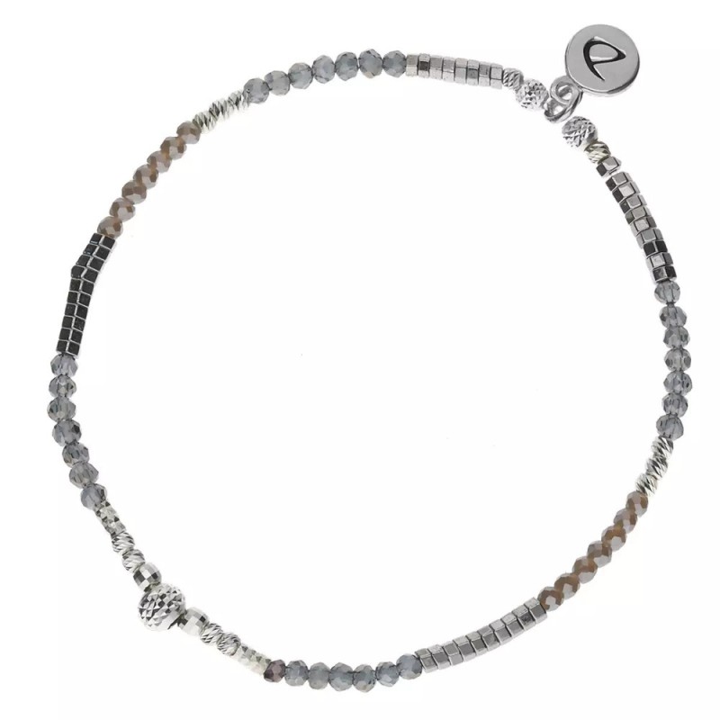 Bracelet Elastique Kandy Gris foncé signé DORIANE bijoux. Le Bracelet Élastique Perle Diamantée Gris Foncé Kandy séduit par son alliance sophistiquée de perles en Argent 925 ciselées et diamantées et de perles de verre aux nuances grises et marron. Ces éléments se marient avec élégance aux hématites, apportant des reflets métalliques profonds qui illuminent subtilement votre poignet.