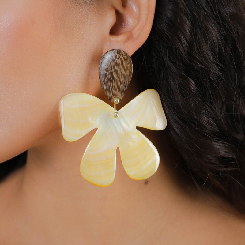 Composition : Nacre dorée, Bois de Roblès, Laiton sans nickel traité contre les allergies.