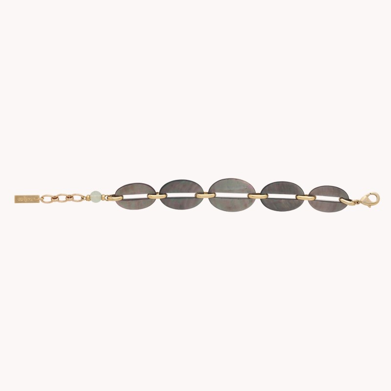 Composition : Fluorine Arc en ciel, Nacre de Palawan, Métal sans nickel traité contre les allergies Bracelet livré dans la pochette de la marque.
