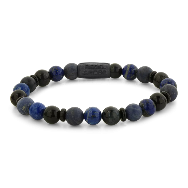 Bracelet extensible pour homme Variations Mix-Blue signé REBEL&ROSE composé de perles de pierres naturelles de 6mm et fabriqué à la main. Les bijoux Rebel & Rose se combinent facilement avec d'autres bracelets en
