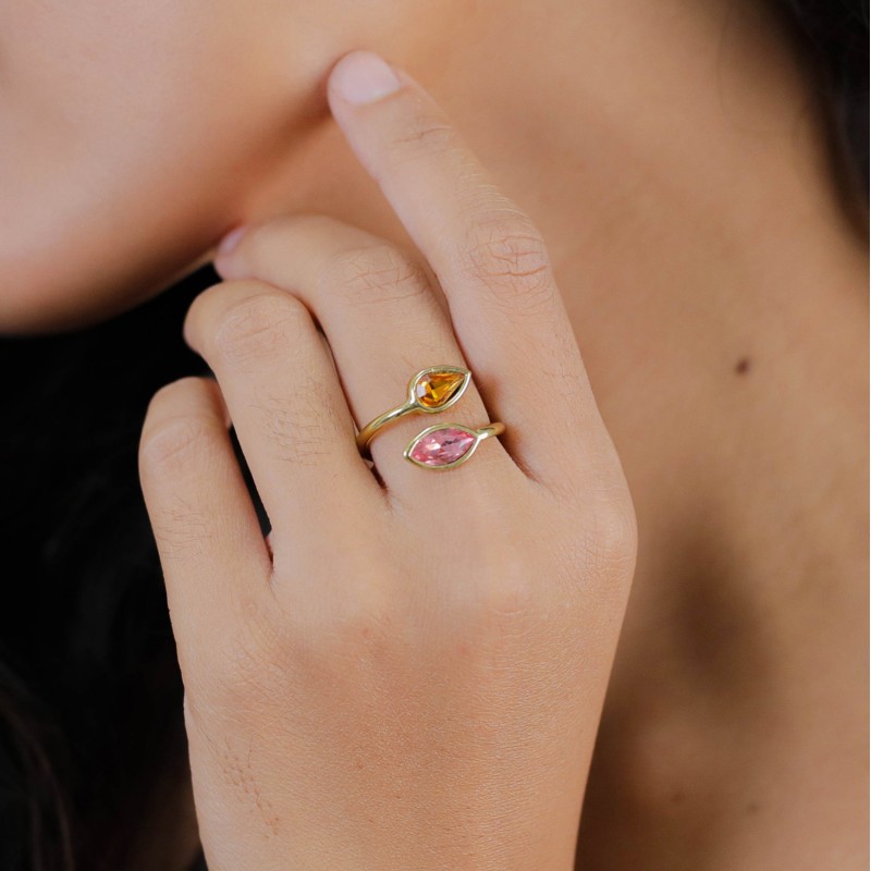 Bague Duo Ajustable Emy signée FRANCK HERVAL. Optez pour Emy : une collection rose-glam qui mixe nacre brune, strass scintillants pour un rendu ultra mode. Les pétales façon pierre fine dessinent des fleurs graphiques, les minis créoles glissent une touche de rose, les colliers soulignent l’encolure d'un pull en V juste ce qu’il faut. Emy, c’est le bijou que vous porterez du matin au soir : léger et confortable. Vous cherchez des boucles d’oreilles rose, un collier ras-du-cou qui booste un tee-shirt blanc ou un bracelet délicat à empiler ? Craquez pour ces bijoux faits main, féminins, faciles à assumer.