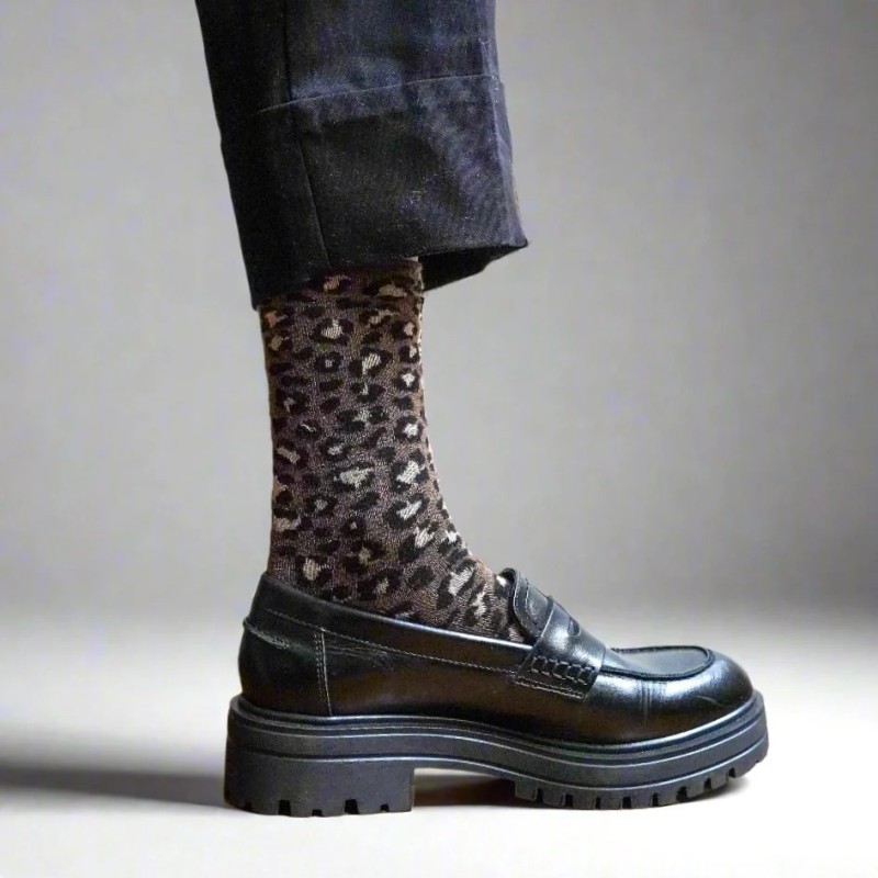 KLUE - Chaussettes à paillettes - Léopard Marron