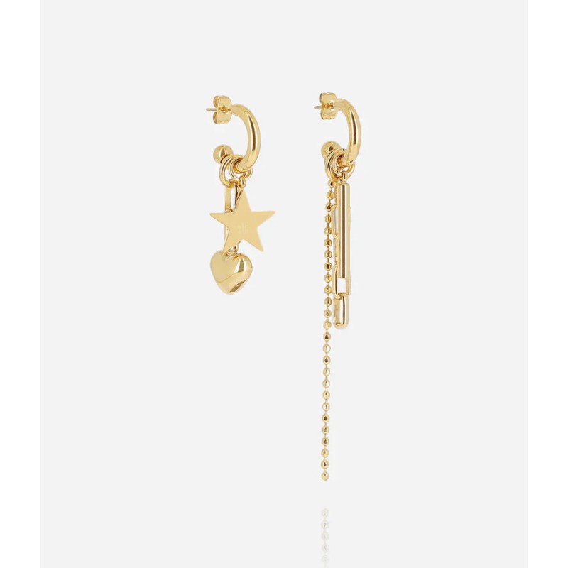 Boucles d'oreilles Créoles Cure signées ZAG Bijoux serties de charms différents des deux côtés (ex étoile, chainette, cœur).