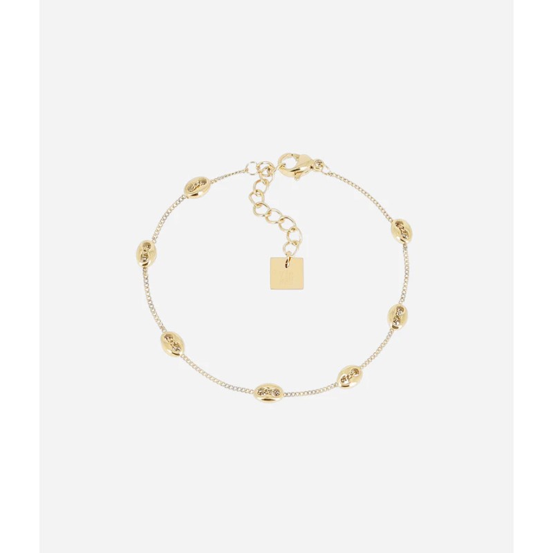 Bracelet Ajustable Santino signé ZAG Bijoux orné de plusieurs petits grains de café en acier qui peuvent se déplacer sur la chaîne.