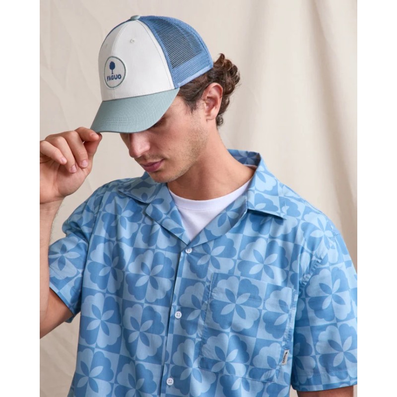 La casquette homme vert et bleu TRUCKER associe toile de coton et mesh pour un style affirmé et respirant. Sa construction à 6 pans assure une bonne tenue, tandis que le mesh favorise l’aération. Le badge brodé FAGUO apporte une signature forte. L’attache réglable permet un ajustement facile. Une casquette homme idéale pour les looks estivaux et décontractés.