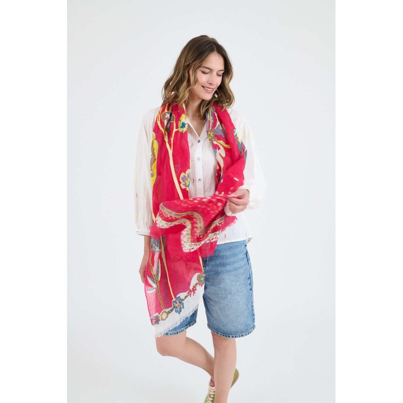 Echarpe Alison Fuchsia signée Storiatipic Women rehaussée de broderies.