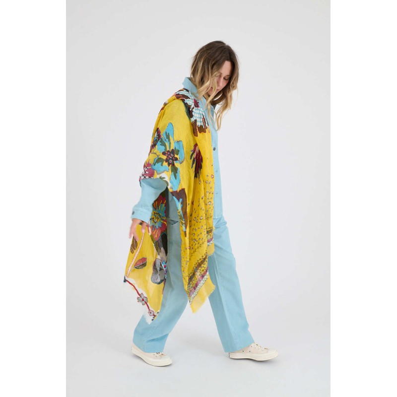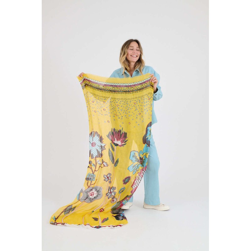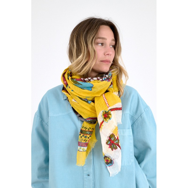 Echarpe Alison Jaune signée Storiatipic Women rehaussée de broderies.