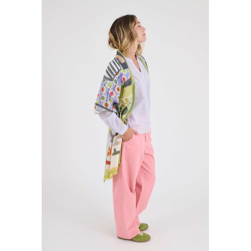 Foulards conçus en France dans l'atelier de Marie Gozard et produits en Inde par des artisans locaux sélectionnés pour leur savoir faire et pour leur respect des normes ethniques et environnementales. Ce foulard a été conçu en respectant les méthodes traditionnelles de teinture et d’impression Indienne. Les variations de couleur et d’impression ne sont pas des défauts, mais plutôt des éléments qui contribuent à la beauté naturelle et à la singularité de chaque écharpe.