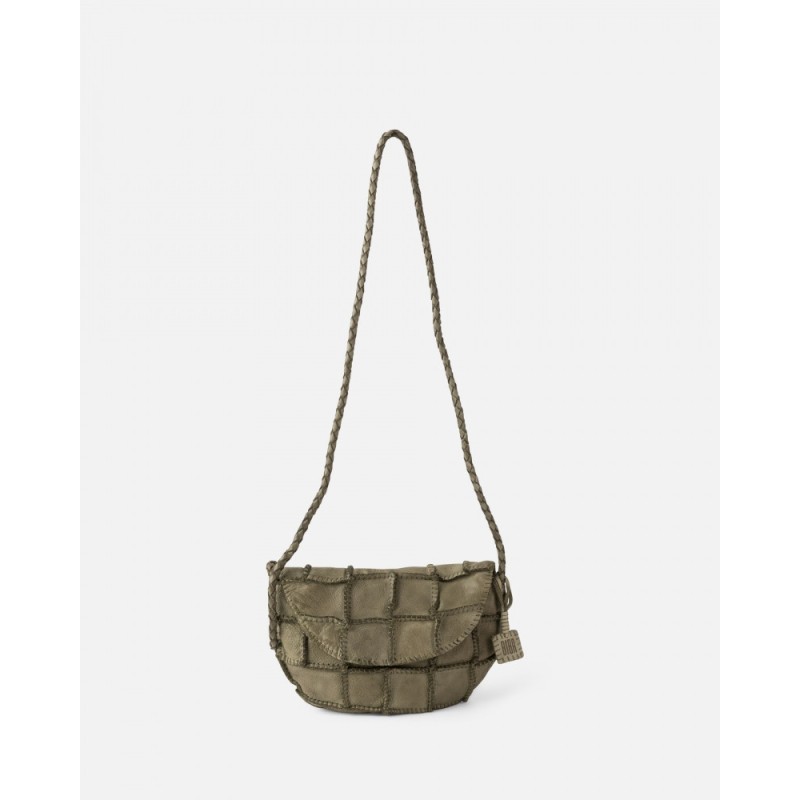 Sac Bandoulière Oley en cuir de vachette lavé issu de la marque BIBA. Motif patchwork réalisé par l'assemblage de différentes pièces de cuir. Fermeture à rabat et bouton. Doublure en coton. Sans poches.
