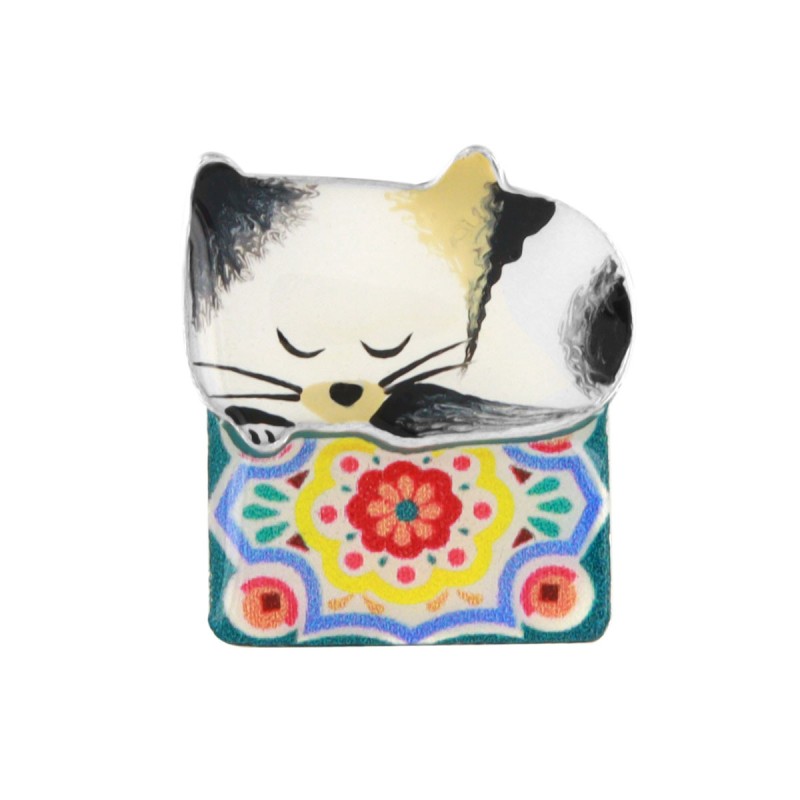 Composition : Résines colorées dont les motifs sont peints à la main, Inclusion d'un motif imprimé dans une résine transparente, Etain, Laiton sans nickel et traité contre les allergies.