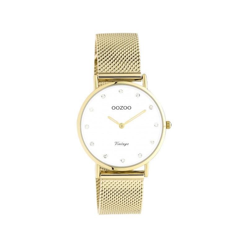 Montre femme acier doré signée OOZOO composée d’une maille milanaise et d'un cadran strassé de zirconium.