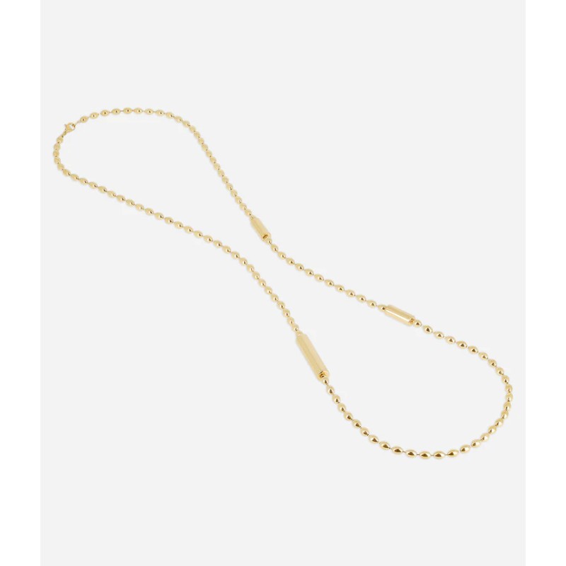 Collier Sautoir Partinello signé ZAG Bijoux composé de maillons en grains de riz, il est sertis de 3 empiècements en forme de tube en acier.