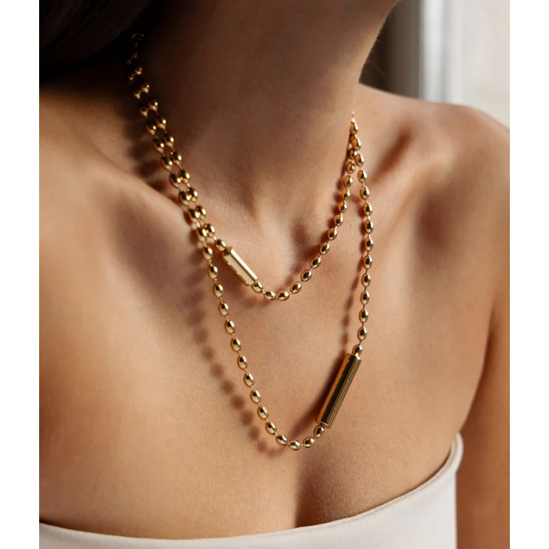 Collier Sautoir Partinello en Acier doré.