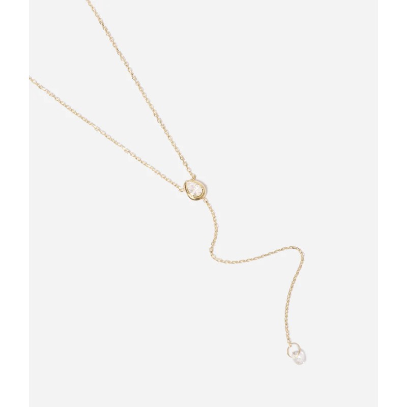 Collier Elessia signé ZAG Bijoux orné d'un zirconium en forme de goutte au centre duquel est reliée une chainette elle-même sertie d'un zirconium.