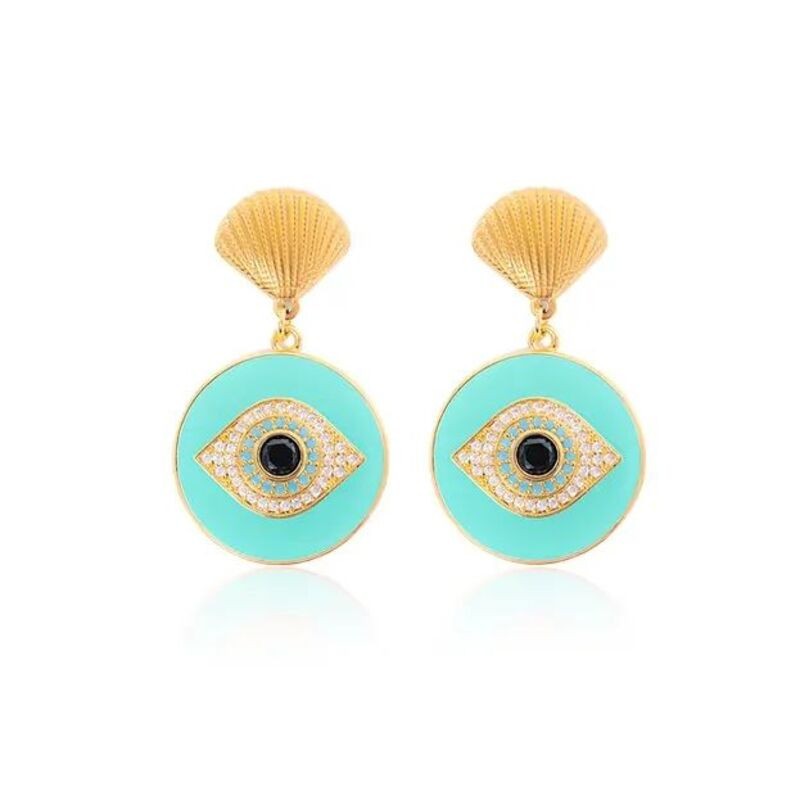Boucles d'oreilles Poussoir Aqua signées MADAMIRMA. Ces boucles d’oreilles sont émaillées et ornées de strass en Zirconium.