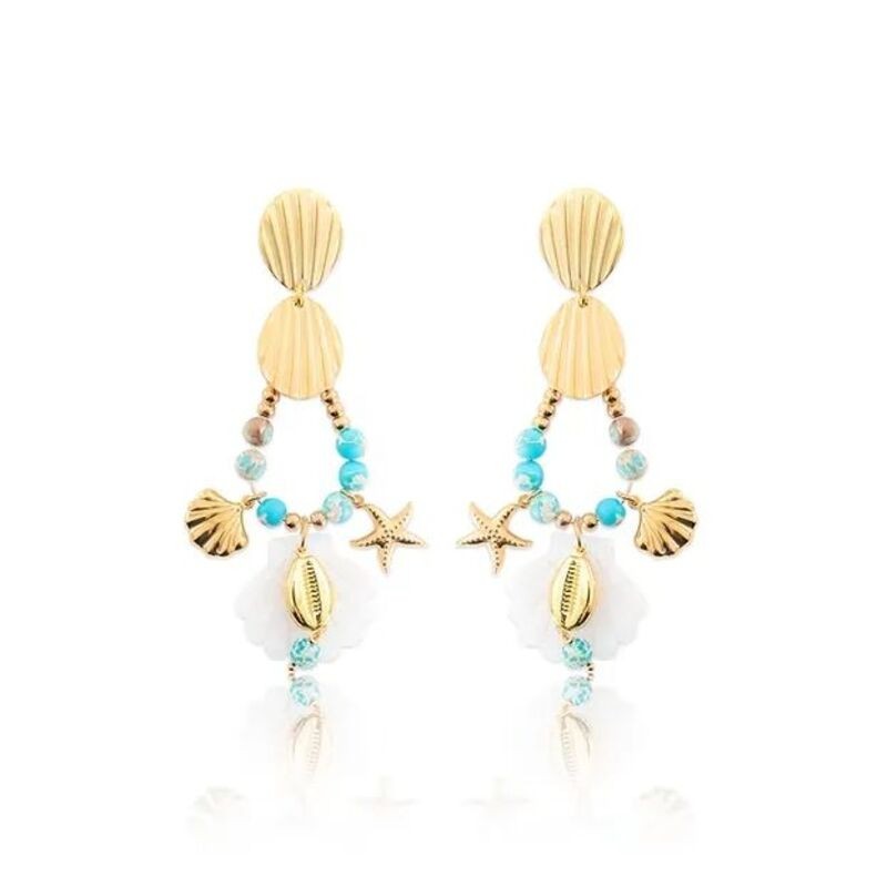 Boucles d'oreilles Poussoir Calypso signées MADAMIRMA ornées d’un pendentif coquillage en Nacre.