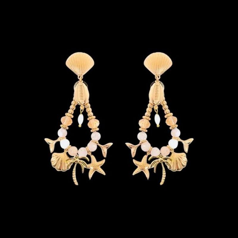 Boucles d'oreilles Poussoir Gaya signées MADAMIRMA ornées de différentes breloques.