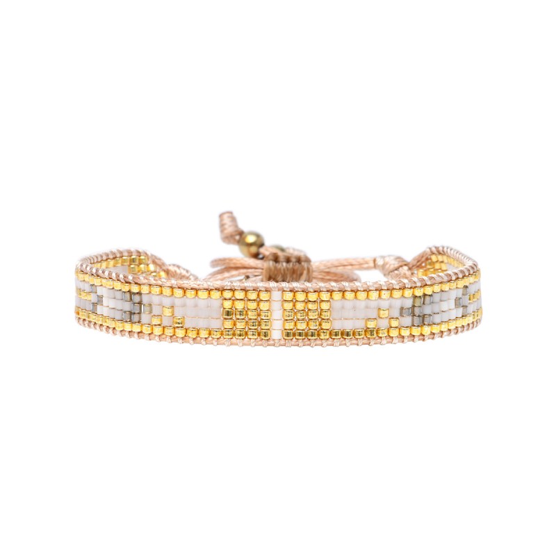 Bracelet ajustable Inès signé BELLE MAIS PAS QUE. Ce bracelet est composé de perles de Miyuki du japon et de charms inoxydables. Tout comme vous, chaque bijou est unique : chaque perle est tisée une à une, à la main et à l'aiguille durant une à plusieurs heures, voire parfois des jours pour certaines pièces.. Fermoir lien coulissant et ajustable à tous les poignets. Pensés pour tous, ces bracelets s'adaptent à chaque poignet grâce à leurs fermoirs lien coulissant et sont inoxydables. Ils vous suivent partout... Les perles de Miyuki sont réputées pour leur brillance et leur parfaite régularité. Elles sont gages de très haute qualité et de durabilité.