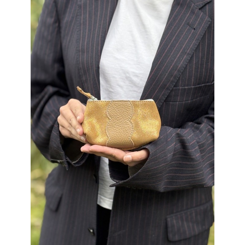 Trousse Athéna en cuir Pailleté Sable doré.