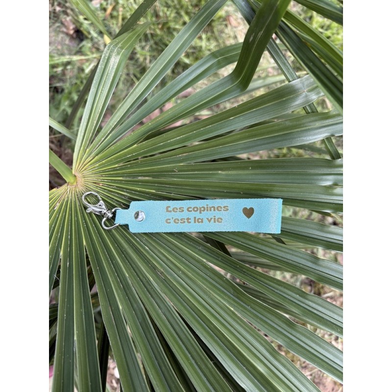 Porte-Clés Message Les Copines C’est la Vie en Cuir Pailleté Menthe.