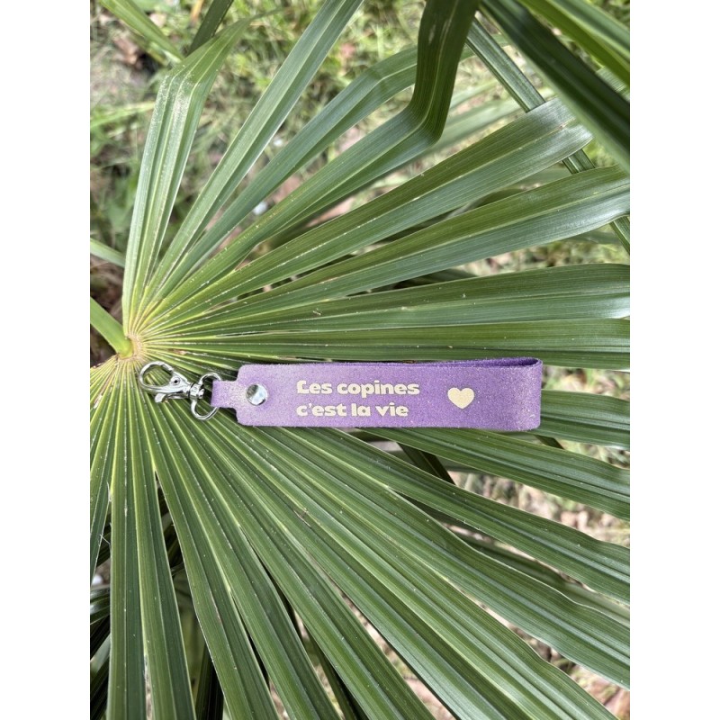 Porte-Clés Message Ma Vie en Paillettes en Cuir Pailleté Violet.