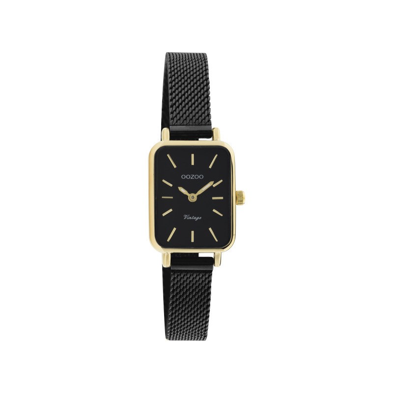 Montre femme acier signée OOZOO composée d’une maille milanaise noire mat.