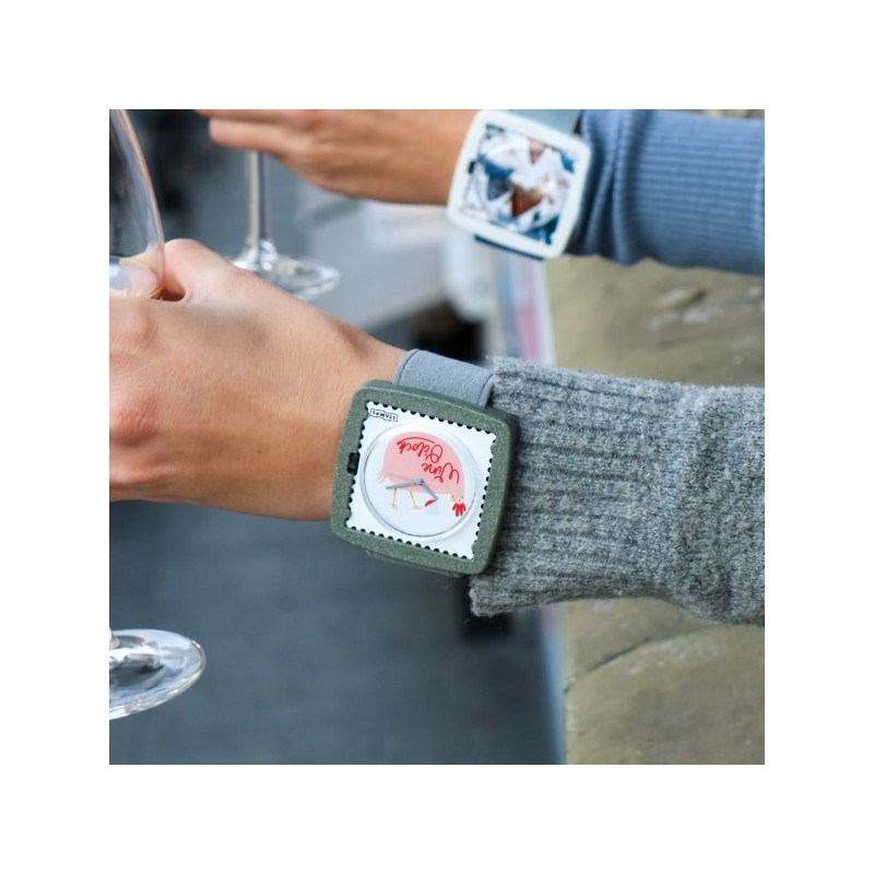 L'Entourage de cadran Stamps Cool Jack se place sur le cadran de la montre Stamps pour en changer le look en un clin d'œil, Il suffit d'insérer la montre dans le cadre par l'arrière et de tirer le bracelet dans les fentes prévues à cet effet. C'est fait !
