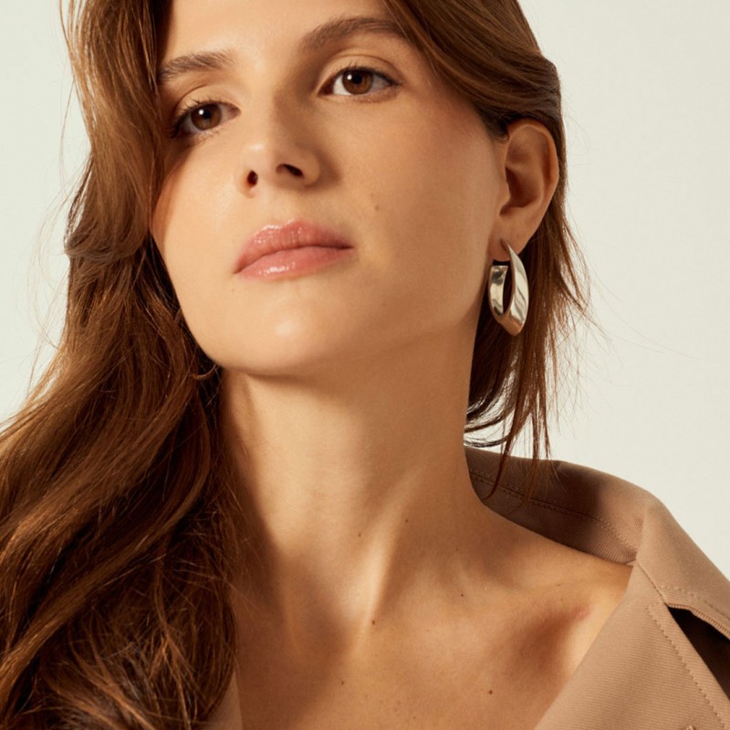 Boucles d'oreilles Créoles ovales Plaquées Argent.