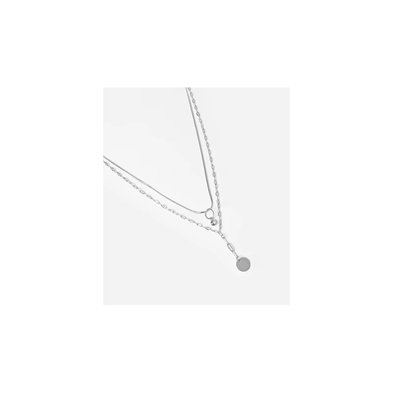 Collier Fretia signé ZAG Bijoux composé de 2 rangs ornés d’un pendentif rond avec un Zirconium et d’un pendentif en acier.