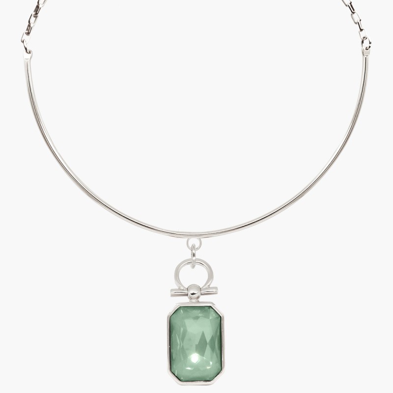 Collier Choker Omega Luz issu de la marque CXC orné d’un Cristal de Swarovski de couleur Agave de 2 x 4.5 cm environ.