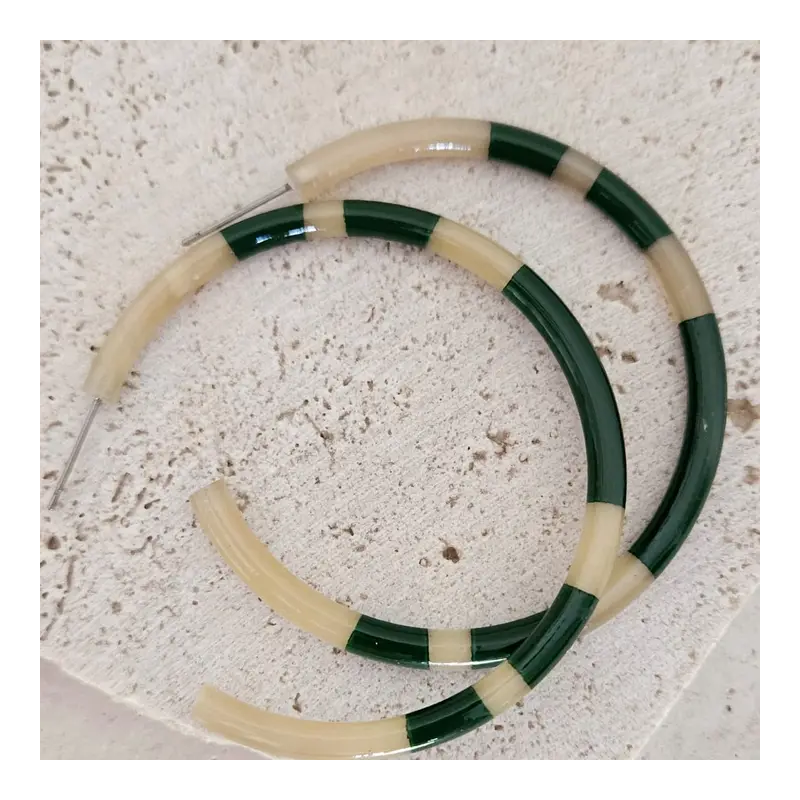 Boucles d'oreilles Créoles signées Le Coin Sauvage en corne laquée Kaki.