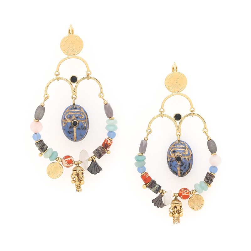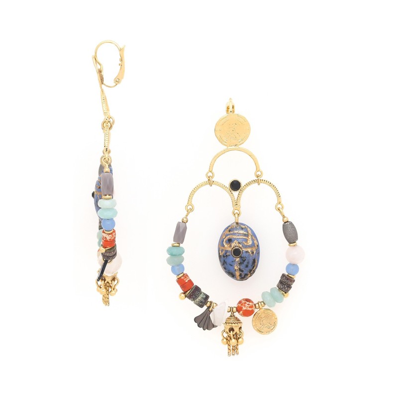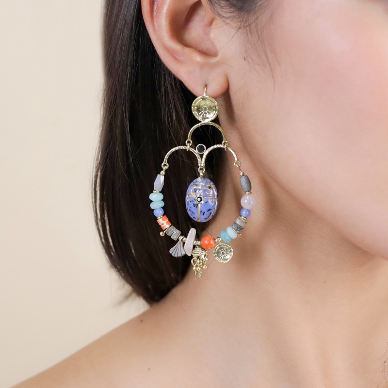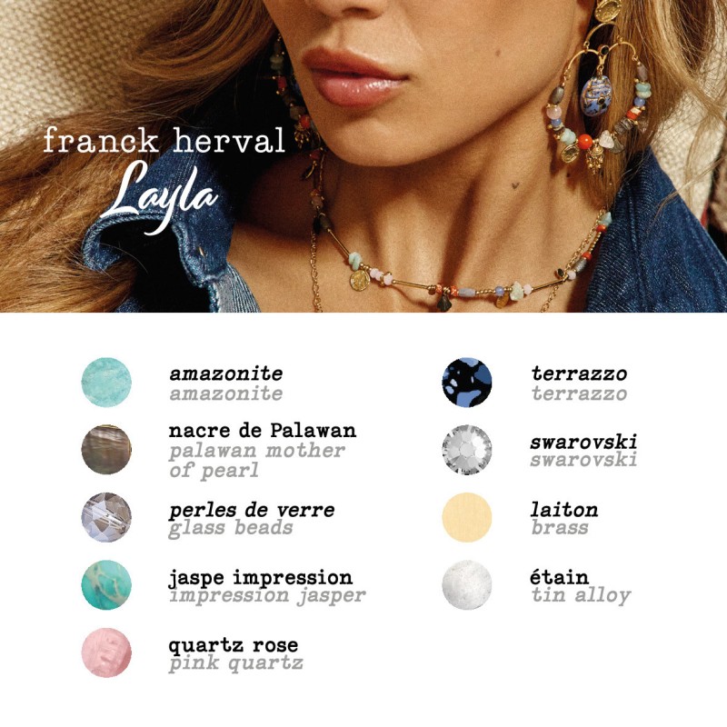 Dormeuses Fantaisies signées FRANCK HERVAL. La collection Layla vous invite à un voyage mystique, inspiré des bijoux égyptiens anciens. Le scarabée, symbole de protection, est au cœur de ces créations. Ces bijoux talismans sont autant de bijoux grigris à porter au quotidien, pour un look aussi protecteur que stylé. Chaque bijou porte-bonheur est riche en couleurs et matières, de la nacre de Palawan à l’amazonite, en passant par le terrazzo. Sublimez votre quotidien avec ces bijoux talisman porte-bonheur, véritables amulettes de bien-être !