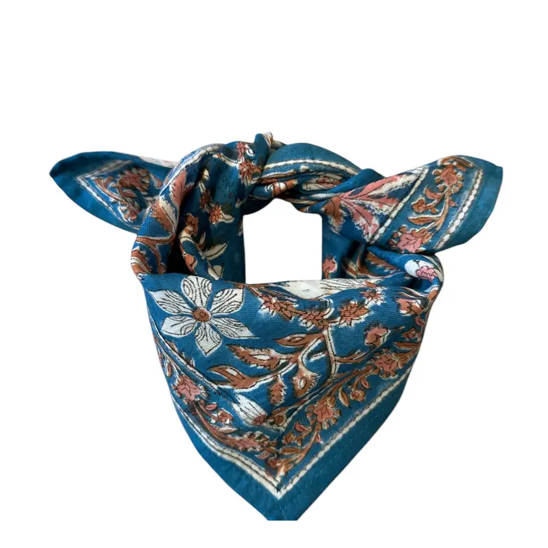 Ce foulard est confectionné artisanalement grâce à la technique indienne du block-print, les couleurs sont réalisées à partir de pigments naturels. Cette confection manuelle peut entraîner certaines irrégularités qui en font le charme en le rendant unique ♡