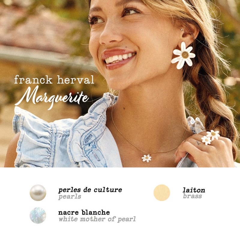 Dites-le avec des fleurs ! Avec la collection Marguerite, Franck Herval réinvente la simplicité élégante de cette fleur iconique en des bijoux lumineux et modernes. La ligne Marguerite est une ode à la beauté au naturel, parfaite pour illuminer votre quotidien d’un éclat doux et radieux.